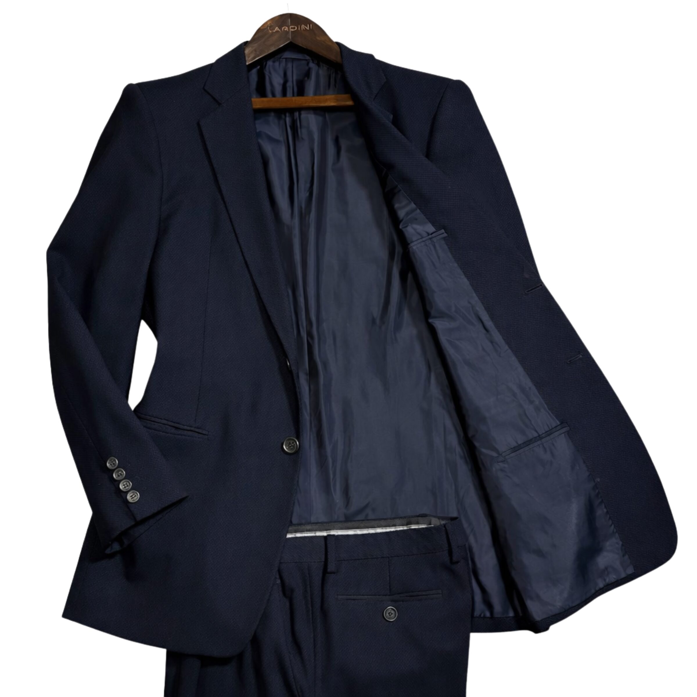 今回のお品は使用感が少なく、全体的に非常に良好な状態でした。目立つシミや汚れ、ほつれなどもなく、型崩れも少ない綺麗なコンディションでした。スーツはシルエットと状態が査定額に大きく影響するため、今回のような再販しやすい状態は高評価につながります。